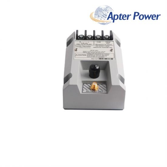 O transmissor é um dispositivo alimentado por loop de dois fios que aceita entrada de nossa sonda de proximidade 3300 NSv e seu cabo de extensão correspondente (disponível em 5 m e
